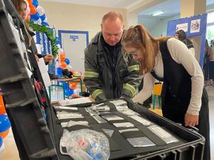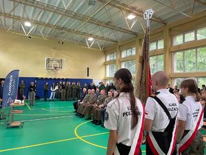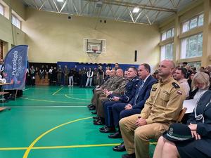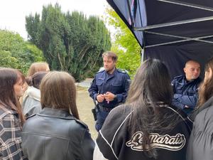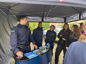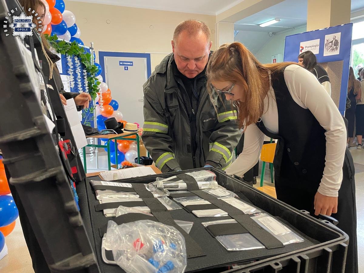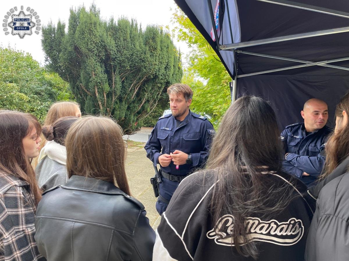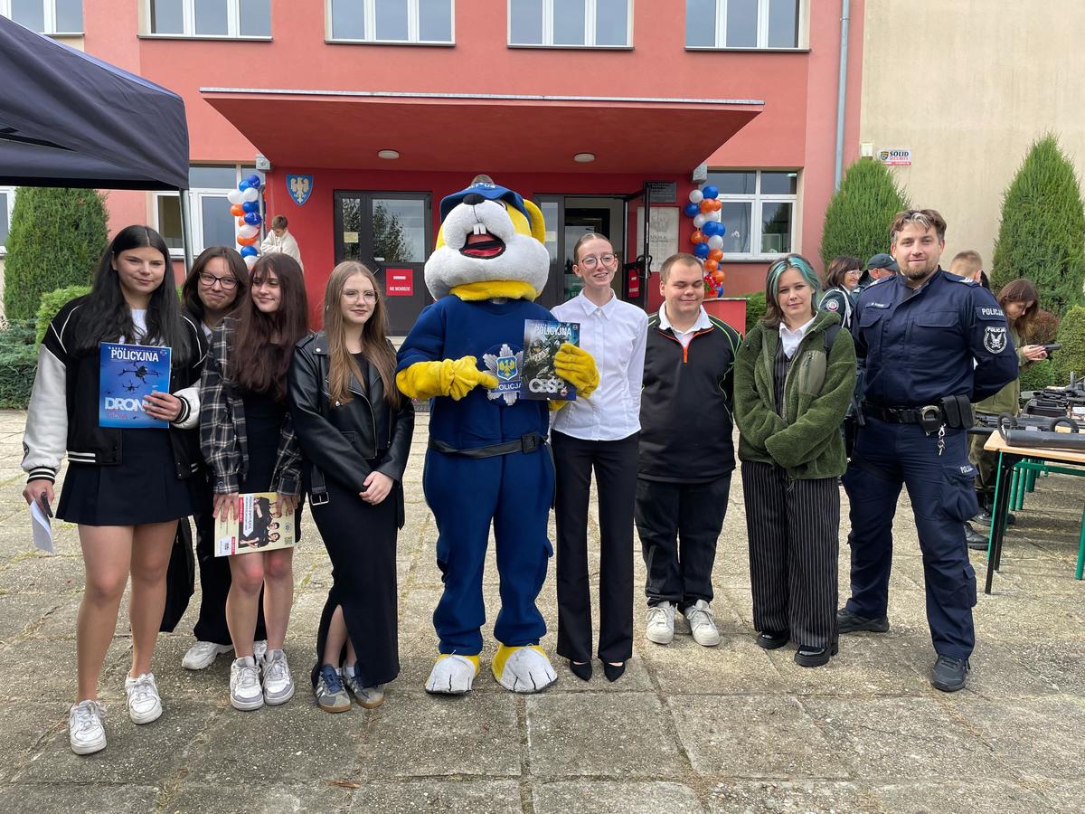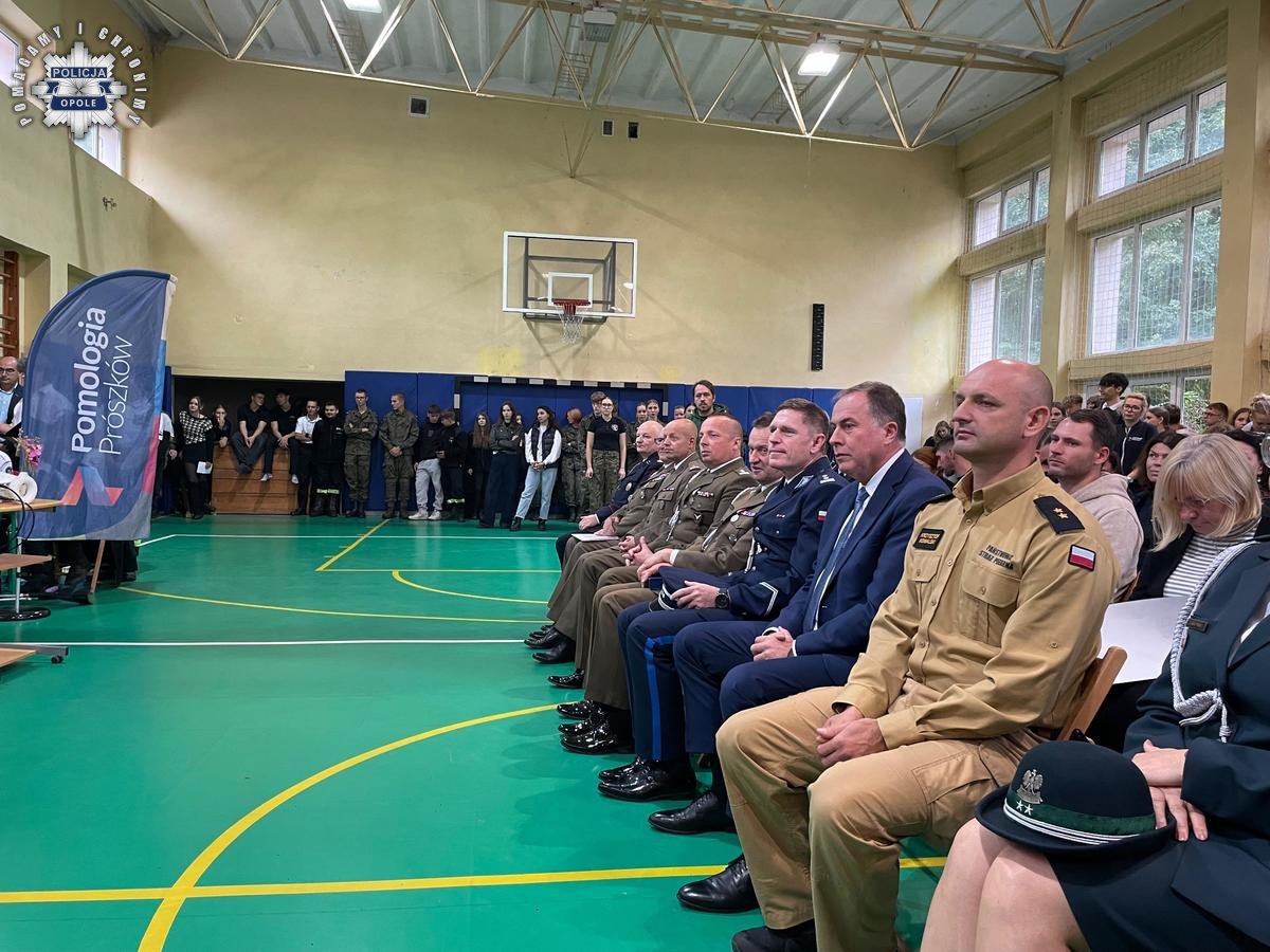 Policjanci z Opola na obchodach Dnia Patrona w Zespole Szkół im. Józefa Warszewicza w Prószkowie