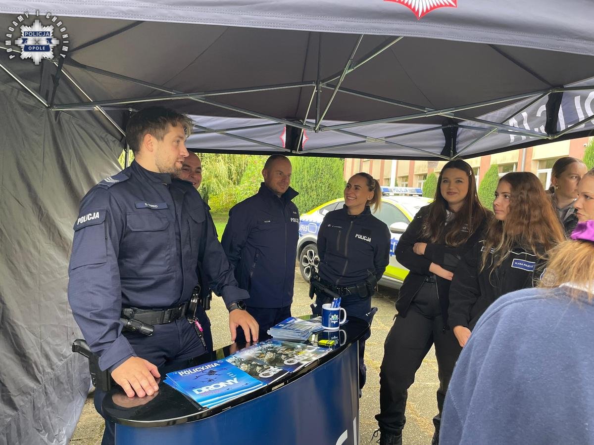Funkcjonariusze z KMP w Opolu również wzięli udział w Dniu Patrona. Na naszych stoiskach uczniowie mogli porozmawiać z policjantami o ich codziennej pracy, zapoznać się z ofertą służby w Policji, przyjrzeć się z bliska pracy technika kryminalistyki czy zobaczyć pojazdy i sprzęt jakim dysponują funkcjonariusze.