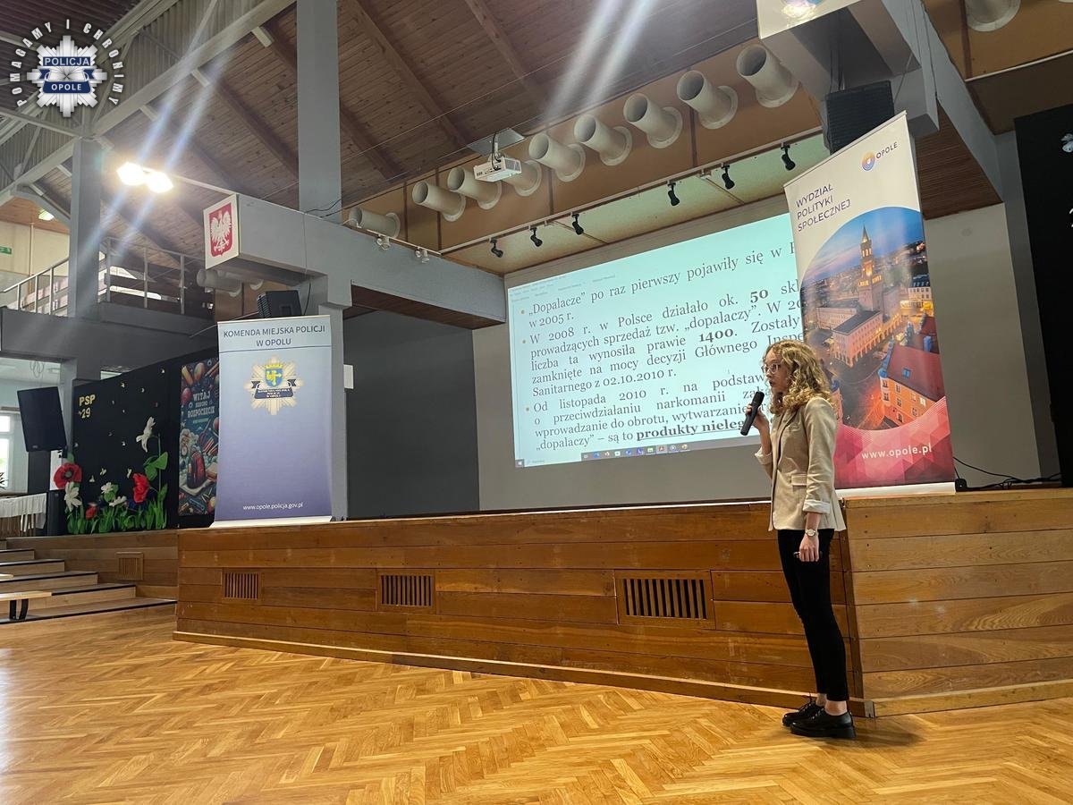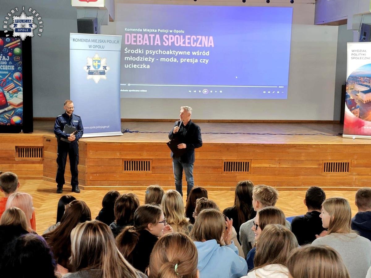 Policjanci z Komendy Miejskiej Policji w Opolu wspólnie z Urzędem Miasta Opola zorganizowali debatę społeczną poświęconą zagadnieniu używania środków psychoaktywnych wśród młodzieży. Zaproszeni prelegenci poruszyli problematykę odpowiedzialności prawnej wśród osób nieletnich, aspekt zdrowotny zażywania narkotyków oraz problematykę presji otoczenia. Spotkanie odbyło się w Publicznym Liceum Ogólnokształcącym nr VI w Opolu.