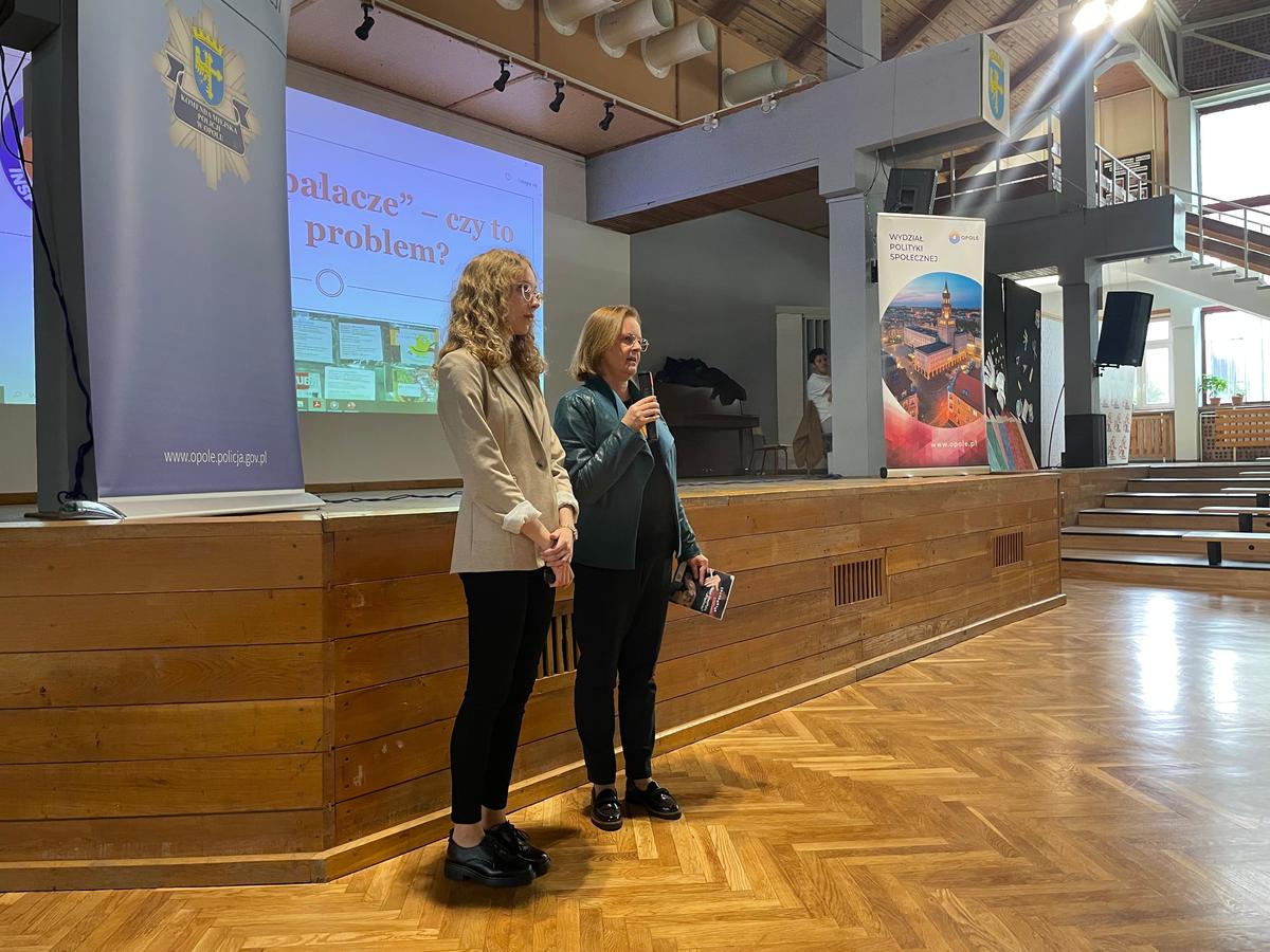 Kolejnym prelegentem była specjalistka z Oddziału Nadzoru nad Chemikaliami z Wojewódzkiej Stacji Sanitarno-Epidemiologicznej w Opolu pani Aleksandra Adamczyk. Jej wystąpienie poprzedziła Kierowniczka Oddziału Promocji Zdrowia i Oświaty Zdrowotnej pani Joanna Głogowska, która wprowadziła uczestników debaty w zagadnienie, jakim zajmuje się Opolski Sanepid. Natomiast pani Aleksandra Adamczyk omówiła to, jak negatywne skutki dla zdrowia fizycznego i psychicznego młodych ludzi ma używanie i zażywanie dopalaczy.