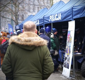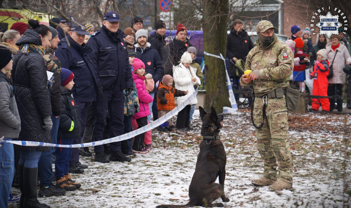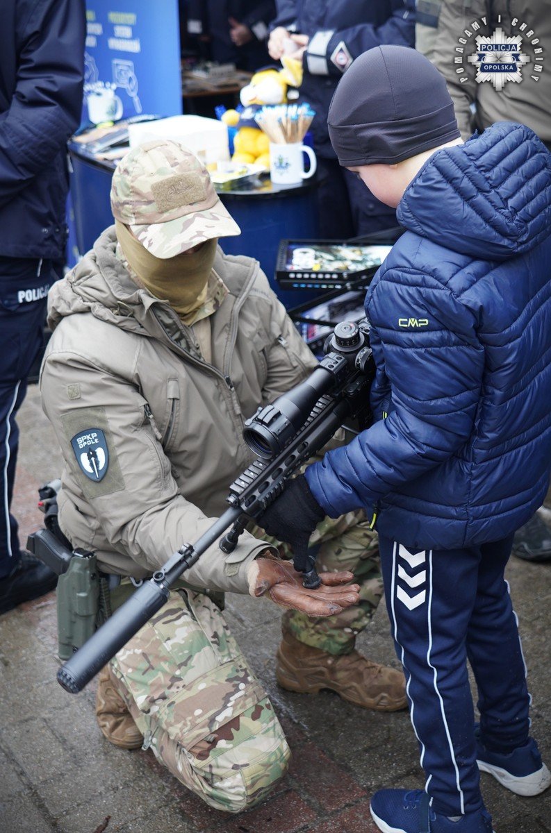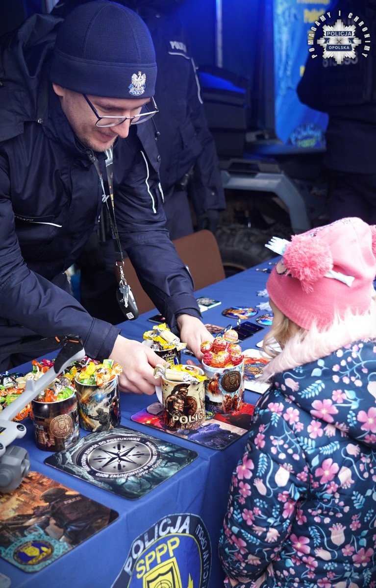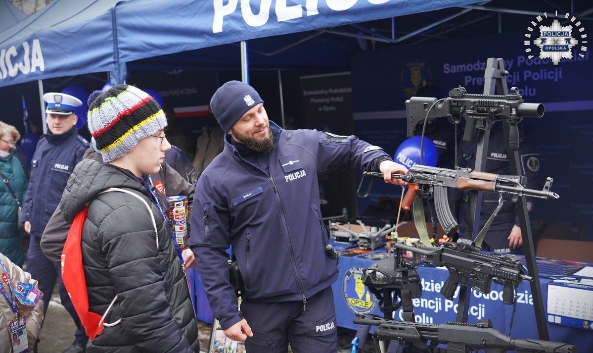 Podczas 34. Finału WOŚP mieszkańcy mieli również okazję spotkać funkcjonariuszy Samodzielnego Pododdziału Prewencji Policji w Opolu oraz policyjnych kontrterrorystów, którzy prezentowali sprzęt wykorzystywany podczas realizacji i codziennej służby. Nie lada atrakcją okazał się pokaz umiejętności policyjnego psa bojowego. Podczas wydarzenia obecni byli także policjanci Centralnego Biura Zwalczania Cyberprzestępczości, którzy przybliżali zainteresowanym zagadnienia związane z bezpieczeństwem w sieci.