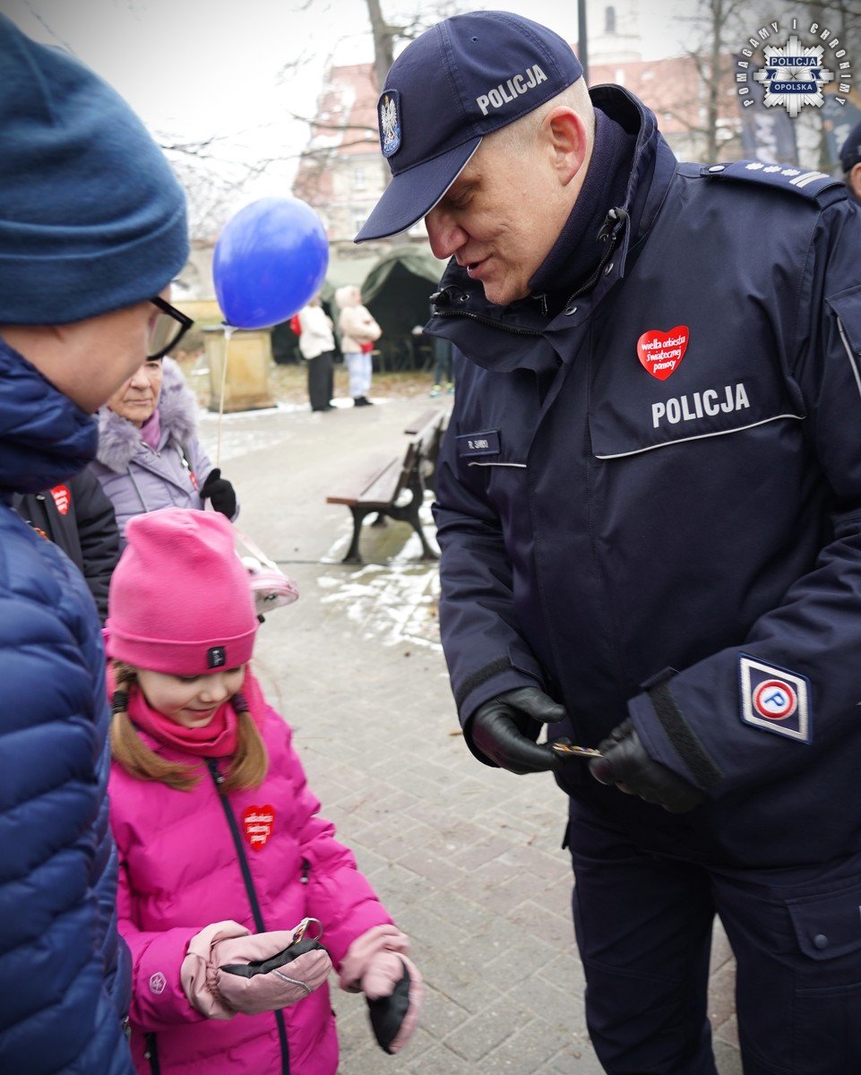 Bezpieczeństwo, spotkania z mieszkańcami i edukacja – w ten sposób opolscy policjanci włączyli się w 34. Finał Wielkiej Orkiestry Świątecznej Pomocy. Funkcjonariusze przede wszystkim dbali o bezpieczeństwo wolontariuszy i uczestników finału w całym regionie, a jednocześnie byli obecni w miasteczku służb mundurowych na Placu Wolności w Opolu. W wydarzeniu uczestniczyli również Zastępca Komendanta Wojewódzkiego Policji w Opolu insp. Remigiusz Sawicki, p.o. Komendanta Miejskiego Policji w Opolu insp. Paweł Kolczyk oraz Dowódca SPPP w Opolu mł. insp. Wojciech Targosiński.