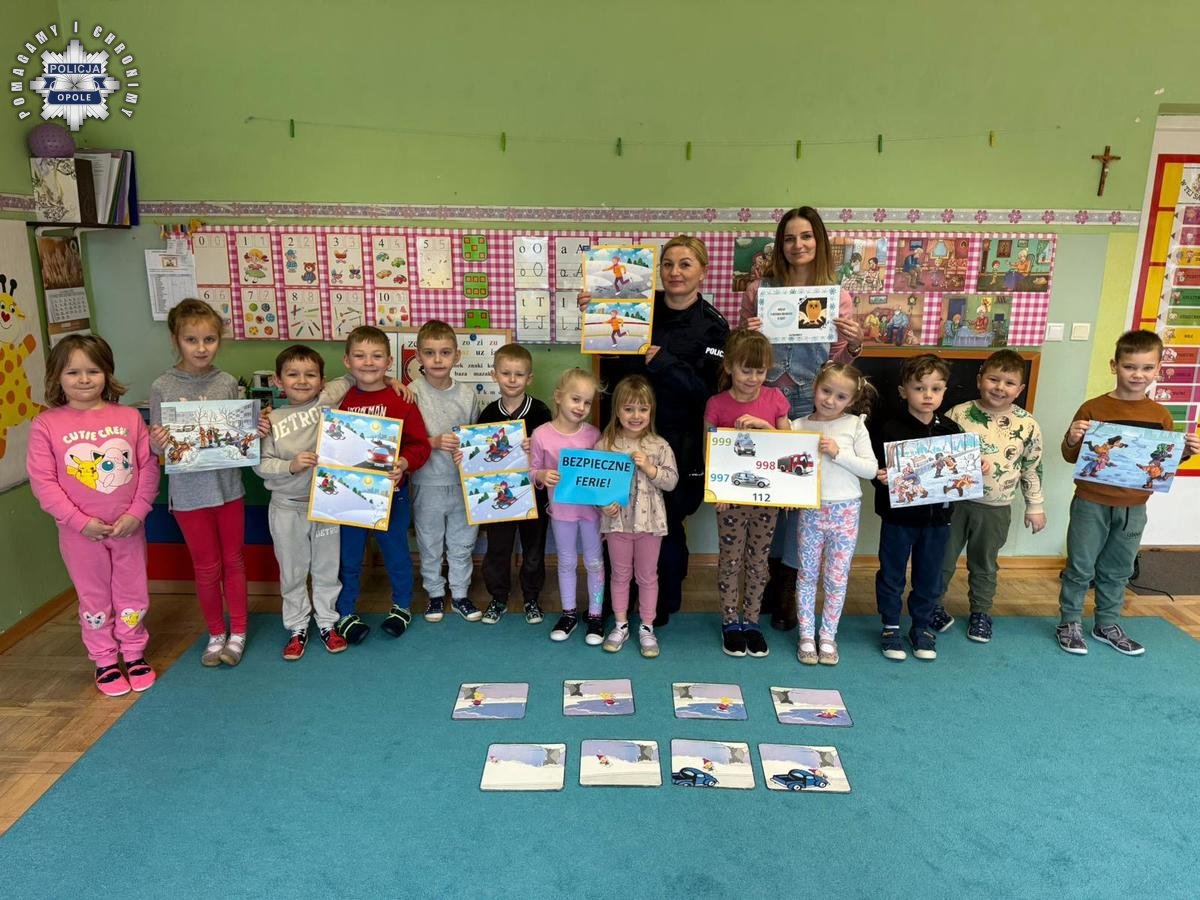 Rozpoczęły się już Zimowe Ferie w naszym regionie. Aby przebiegły one szczęśliwie i wszyscy wypoczęci wrócili do swoich domów, należy pamiętać o podstawowych zasadach bezpieczeństwa, obowiązujących tak podczas wyjazdów zimowych, jak i spędzania tego czasu w miejscu zamieszkania. Policjanci z Komendy Miejskiej Policji w Opolu spotykali się przed rozpoczęciem ferii zimowych z dziećmi z przedszkoli i szkół podstawowych. Teraz w trakcie zimowej przerwy od nauki, funkcjonariusze również rozmawiają z uczniami o bezpieczeństwie podczas zimowego wypoczynku.
