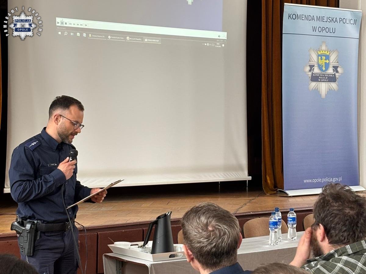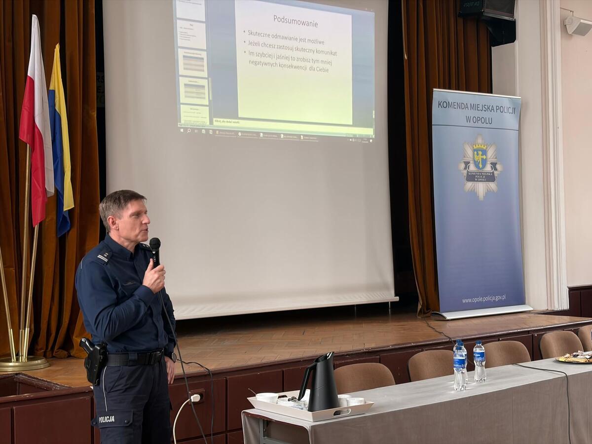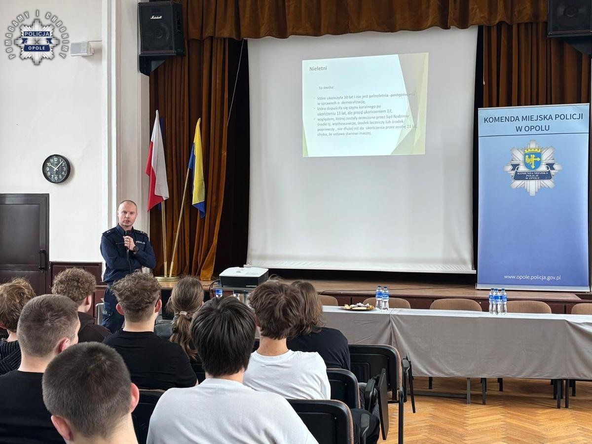 Głos jako pierwszy zabrał Zastępca Naczelnik Wydziału Prewencji Komendy Miejskiej Policji w Opolu, podkom. Dariusz Bala, który omówił odpowiedzialność prawną wśród osób nieletnich. Przedstawił również problematykę demoralizacji wśród dzieci i młodzieży oraz działania, które podejmujemy, aby zniwelować to zagrożenie.