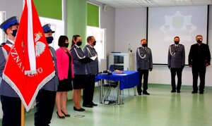 Kolejni nowo przyjęci funkcjonariusze wypowiedzieli rotę ślubowania wieńczącą zapewne kilkumiesięczne starania o spełnienie swoich marzeń związanych z wstąpieniem do Policji. Uroczystość z uwagi na pandemię, odbyła się w skromniejszej formie. Bez wręczenia legitymacji, udziału kadry kierowniczej komendy miejskiej, a także rodzin policjantów. Nie mniej jednak, to ważne wydarzenie na zawsze pozostanie w pamięci młodych ludzi, którzy od tego momentu noszą miano policjantów.