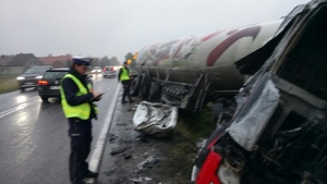 Uważajmy na drodze - po zderzeniu tirów jeden z nich spłonął
